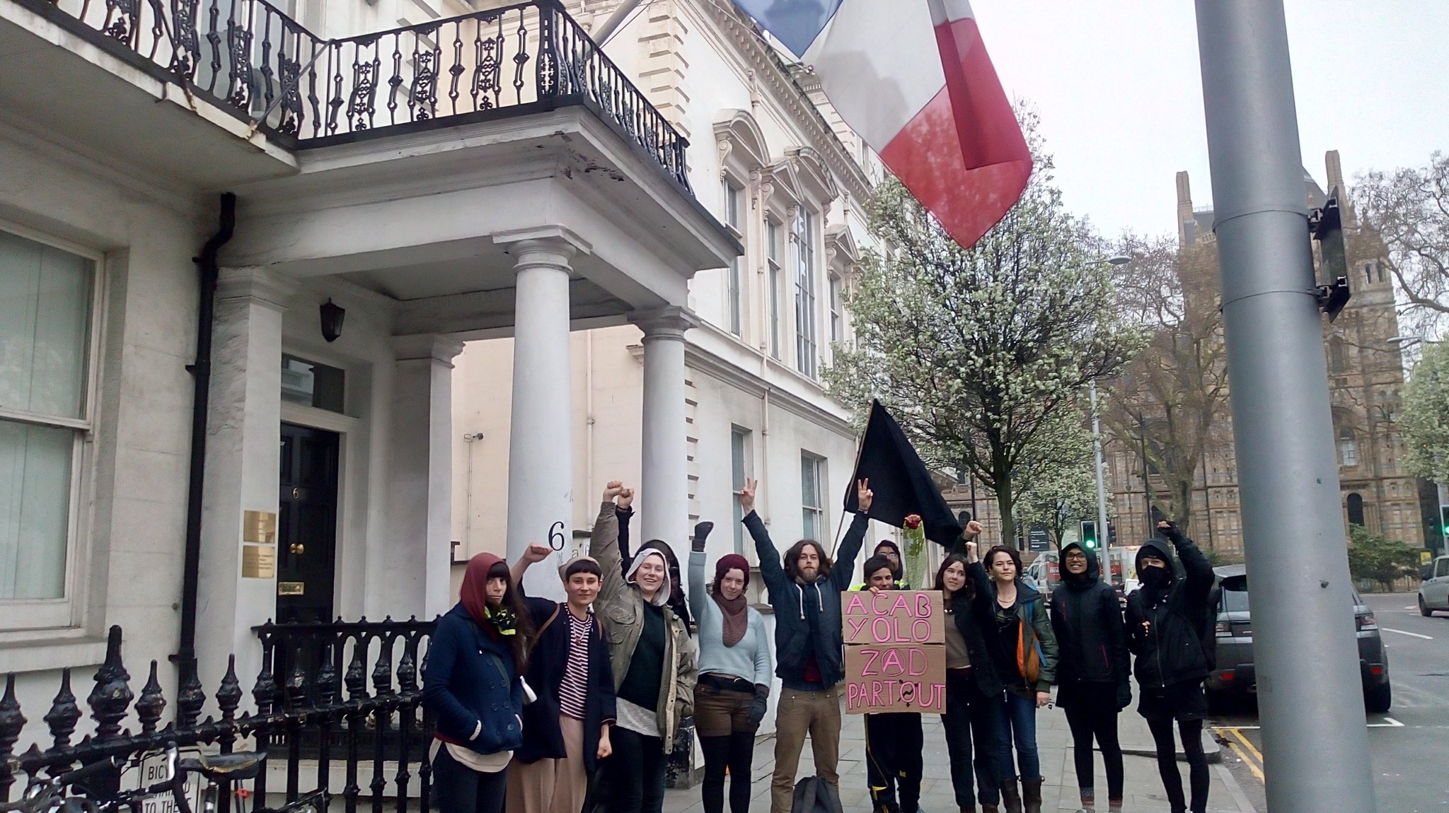 (15.04) 9:12 – dzień dobry z ZAD. Policja dokonała już dwóch aresztowań tego ranka. Dużo gliniarzy kręci się po okolicy. Uważajcie na siebie!