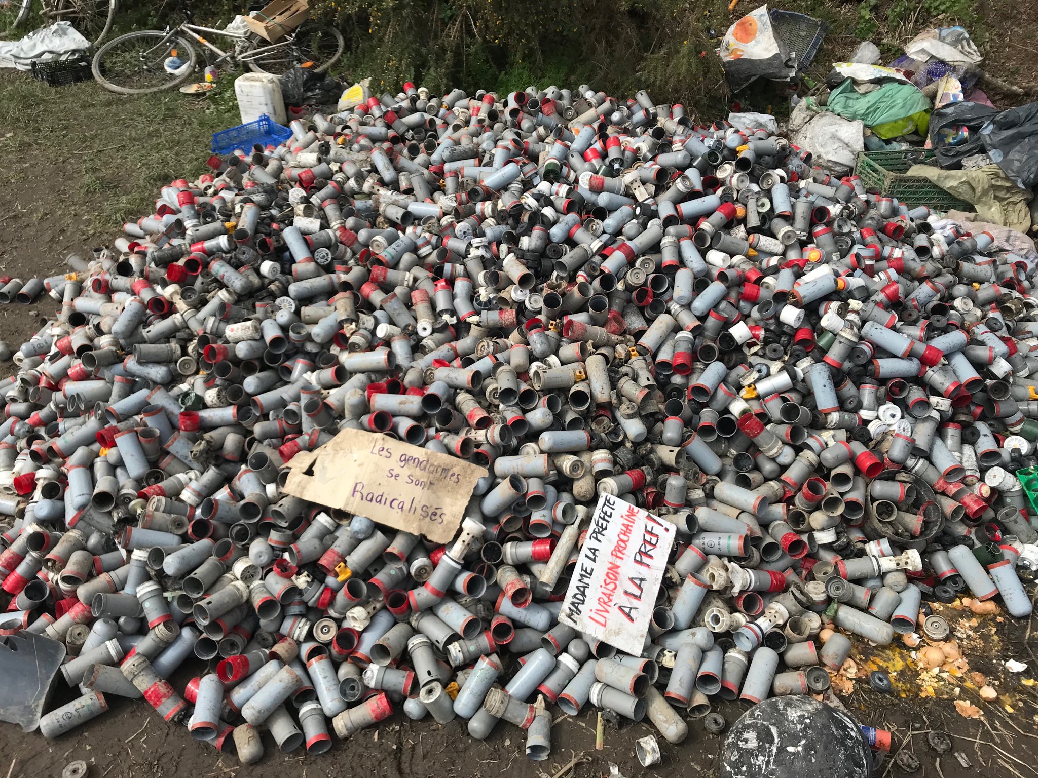 (13.04) zdjęcie przedstawia zebrane w jedno miejsce puszki po granatach wystrzeliwanych przez policję https://pbs.twimg.com/media/DaqZhlJW4AU2KG5.jpg:large
